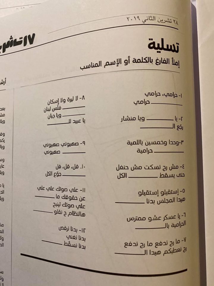 أطلق المحتجّون في لبنان صحيفة باسم الثورة حملت عنوان “17 تشرين” وتحتوي مقالاتٍ وتقاريرَ ورسوماً ومسابقات تسلية من قلب الاحتجاجات والتظاهرات التي اندلعت في مختلف المناطق اللبنانية منذ 17 تشرين الأوّل 2019.