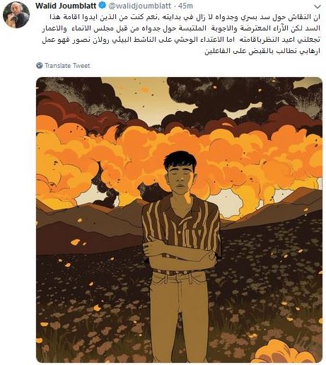 وبالعودة إلى أبرز تغريدات رئيس الحزب التقدّمي الاشتراكي النائب السابق وليد جنبلاط عن مشروع سدّ بسري، نلاحظ أن أول تغريدة لافتة بشأن السدّ كتبها في حزيران من العام 2019 أي منذ حوالي الـ 9 أشهر من اليوم، تزامنت مع الاعتداء الوحشي الذي تعرّض له الناشط البيئي ومنسّق حملة الدفاع عن مرج بسري السيد رولان نصّور، جاء فيها أنه يريد إعادة النظر بشأن المشروع بعد الآراء المعترضة عليه والأجوبة الملتبسة حول جدواه من قبل مجلس الانماء والإعمار حسب تعبير جنبلاط.